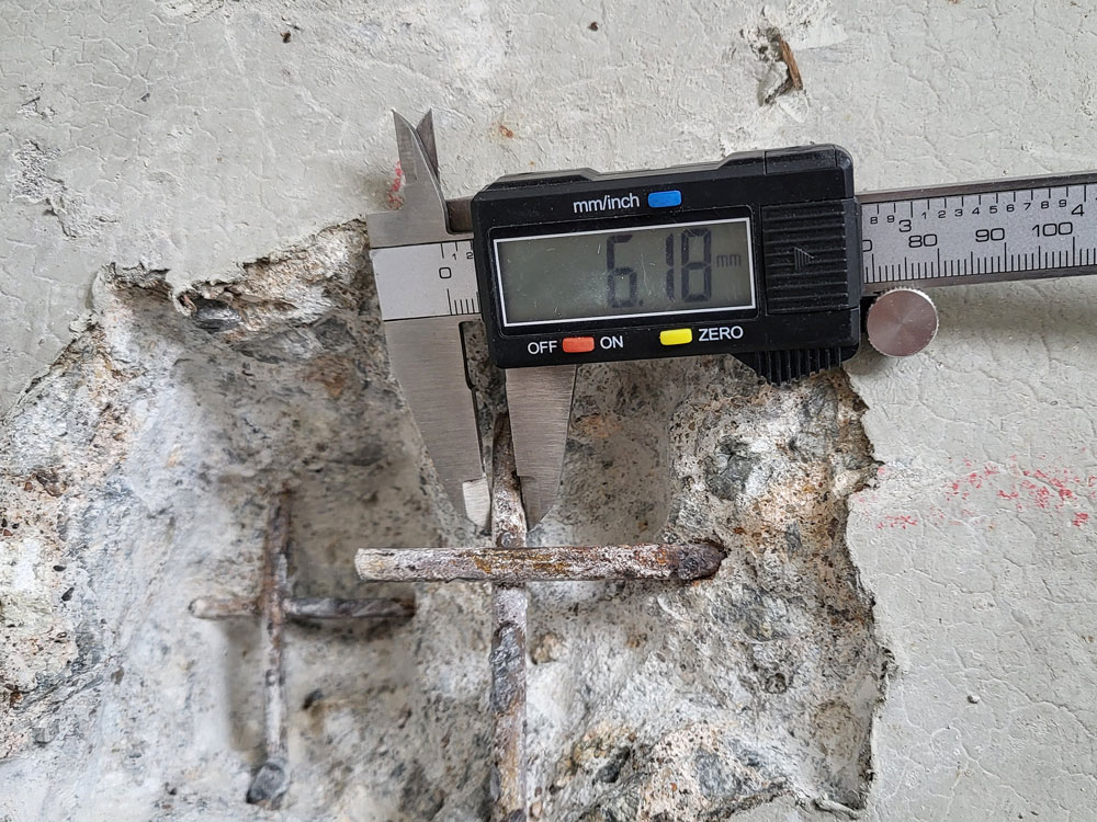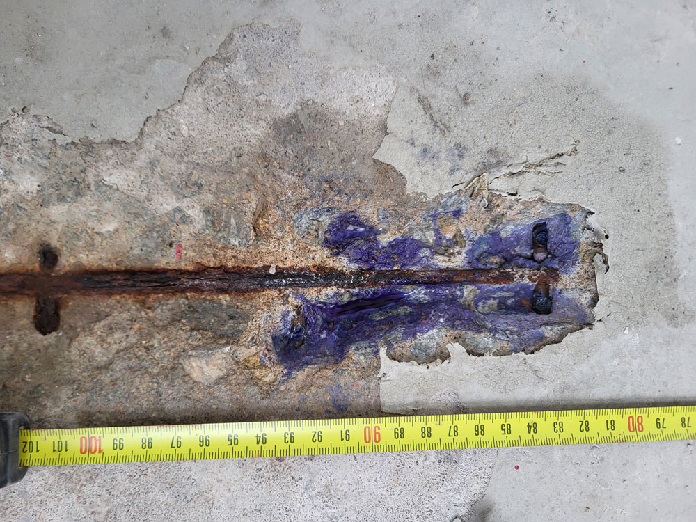 – Réalisation de sondages destructifs ciblés pour préciser la nature, le diamètre et la disposition des aciers,